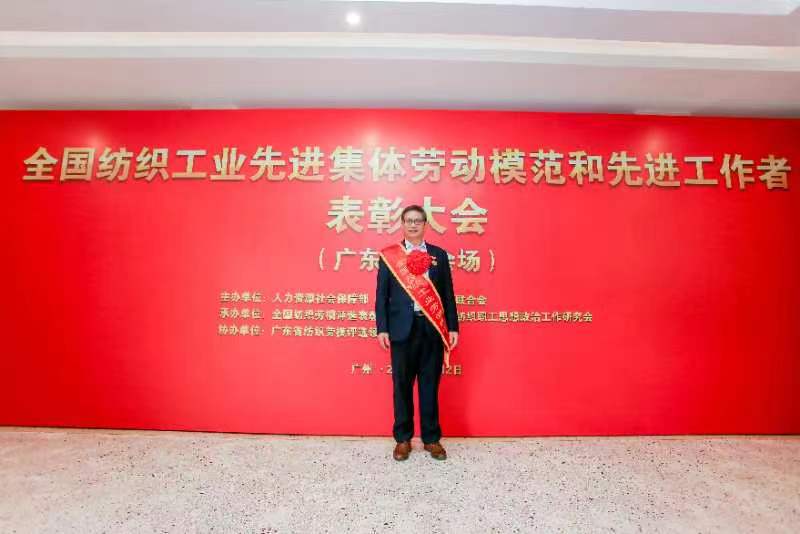 为了大力弘扬劳模精神、劳动精神、工匠精神,推动纺织强国建设再出 发, 充分发挥劳模先进示范引领作用,以实际行动和优异成绩迎接党的二十 大胜利召开, 五年一度的全国纺织工业先进集体、 劳动模范和先进工作者表 彰大会于 2022 年 7 月 12 日隆重举行 。由于疫情原因,今年的表彰大会采取 在北京设主会场,全国各省、自治区、直辖市设立分会场的方式。广东在珠 江宾馆设分会场,连线同步北京主会场方式召开全国纺织工业先进集体劳动 模范和先进工作者表彰大会。 人力资源社会保障部、工业和信息化部、国资 委、中国纺织工业联合会等有关部门的领导出席了表彰大会, 我司总经理程 涛先生荣获“全国纺织工业劳动模范”称号。